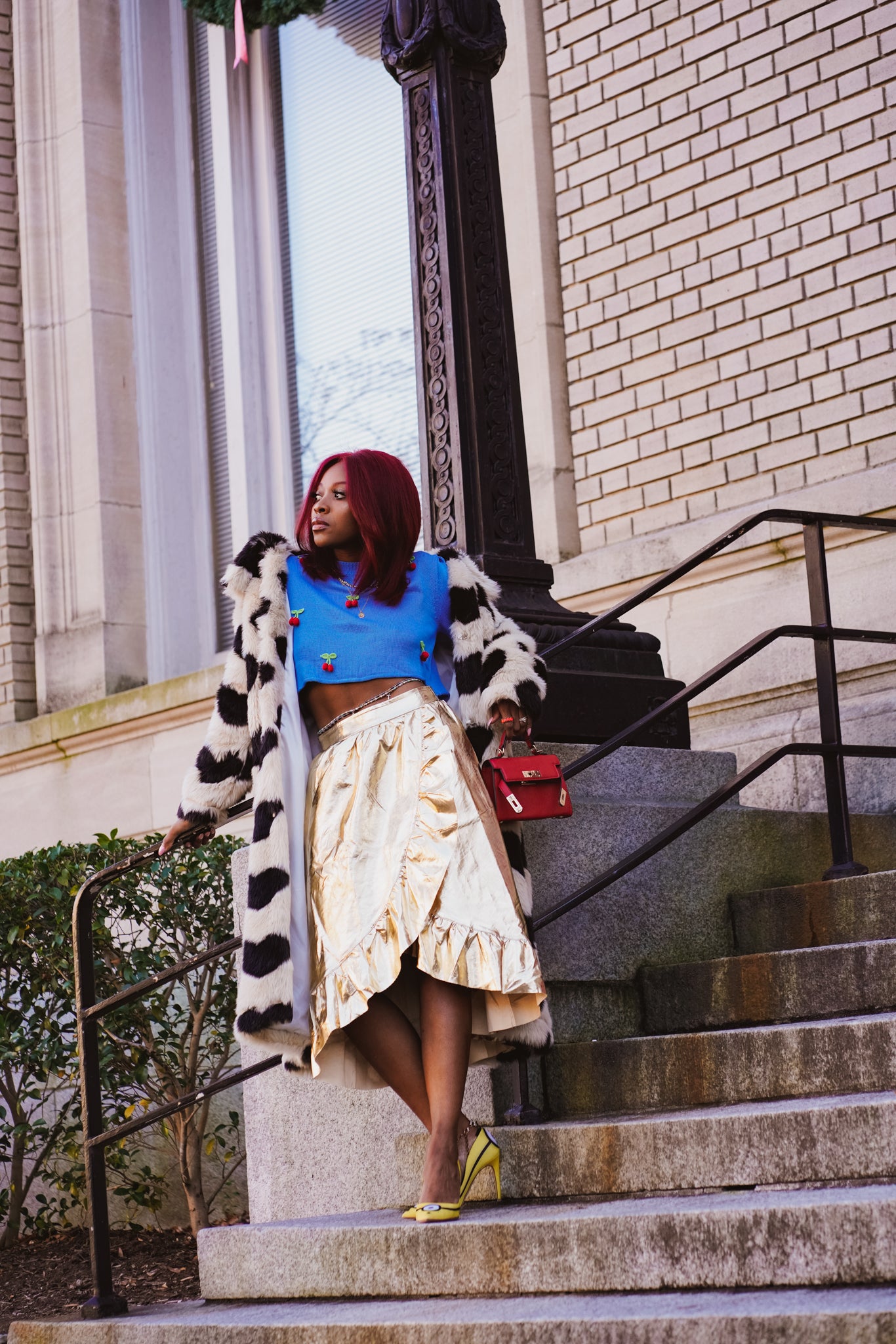 Just wrap put a bow on yourself and lay under the tree! This skirt is the holidays and the new year wrapped in one!