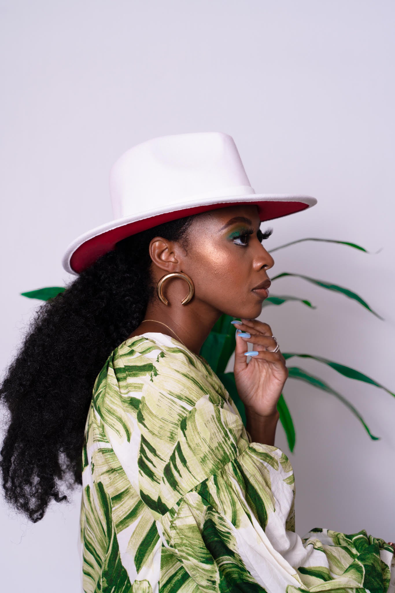 True white fedora with red under brim
